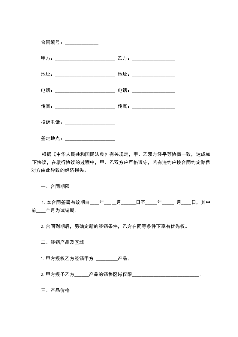 3.经销合同期限:自年月日至年月日。