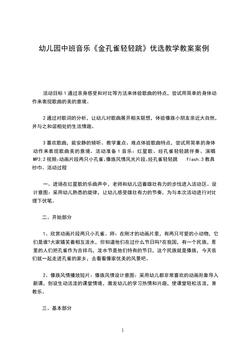 4.让幼儿倾听歌曲金孔雀轻轻地跳,感受歌曲的优美。
