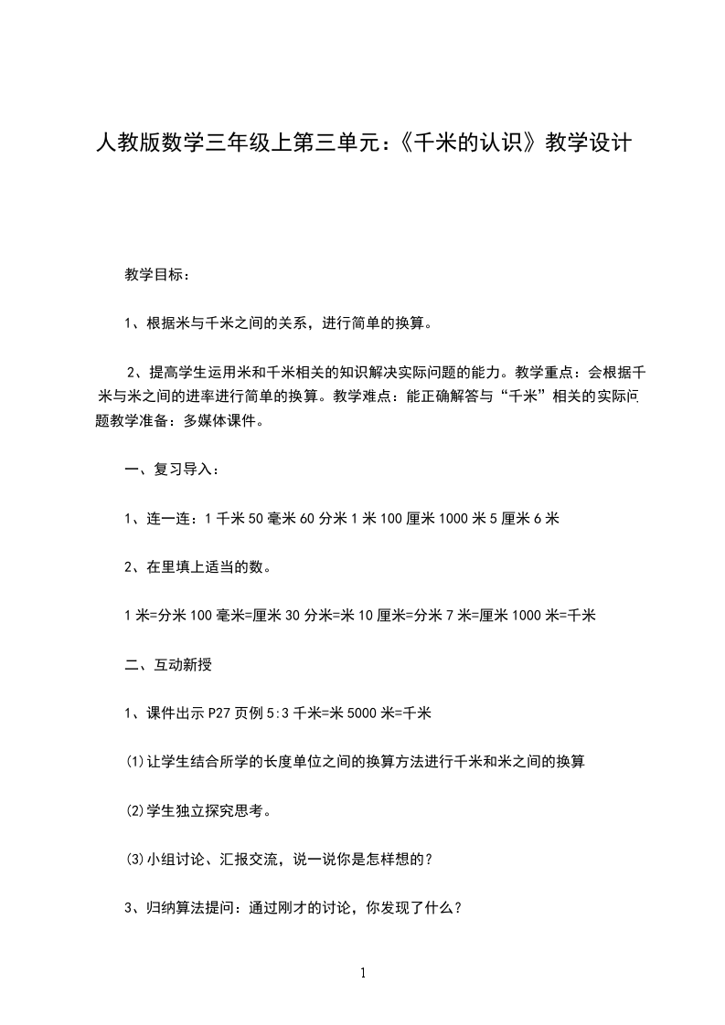 4、米和分米的进率。以分米为单位测测长为1米的木条,数一数1米中有几个1分米,猜想米与分米之间的进率。质疑:米与分米之间是什么关系?1米等于10分米。(板书)小结:到现在为止我们一共认识了四种长度单位,你知道它们之间各有什么关系吗?1米=10分米1分米=10厘米1厘米=10毫米1米=100毫米1分米=100毫米