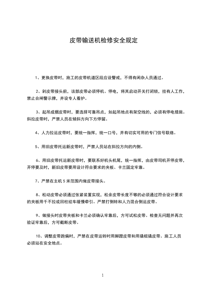 1、禁止使用溜子、皮带运送大件及设备。