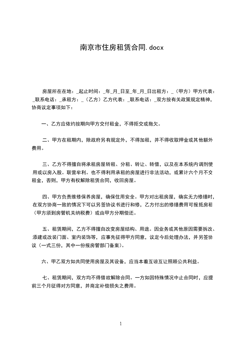 房屋所在在地:_起止时间:_年_月_日至_年_月_日出租方:_(甲方)甲方代表:_联系电话:_承租方:_(乙方)乙方代表:_联系电话:_双方按有关政策规定精神,协商议定事项如下: