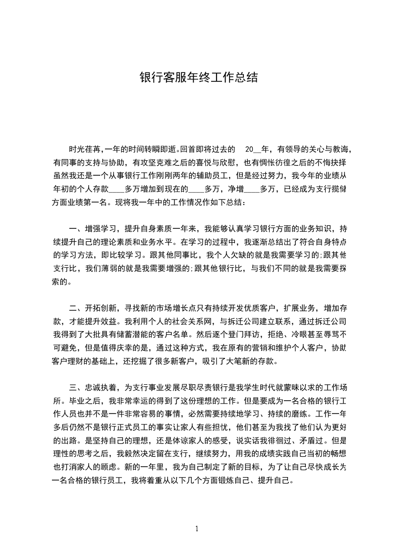 银行客服服务个人年终总结范文时光荏苒,一年的时间转瞬即逝。回首即将过去的年,有领导的关心与教诲,有同事的支持与帮助,有攻坚克难之后的喜悦与欣慰,也有惆怅彷徨之后的不悔抉择。虽然我还是一个从事银行工作刚刚两年的辅助员工,但是经过努力,我今年的业绩从年初的个人存款多万增加到现在的多万,净增多万,已经成为支行揽储方面业绩第一名。现将我一年中的工作情况作如下总结:一、加强学习,提升自身素质一年来,我能够认真学习银行方面的业务知识,不断提高自己的理论素质和业务能力。在学习的过程中,我逐渐总结出了符合自身特点的学习方法,即比较学习。跟其他同事比,我个人欠缺的就是我需要学习的;跟其他支行比,我们薄弱的就是我需要加强的;跟其他银行比,与我们不同的就是我需要探索的。