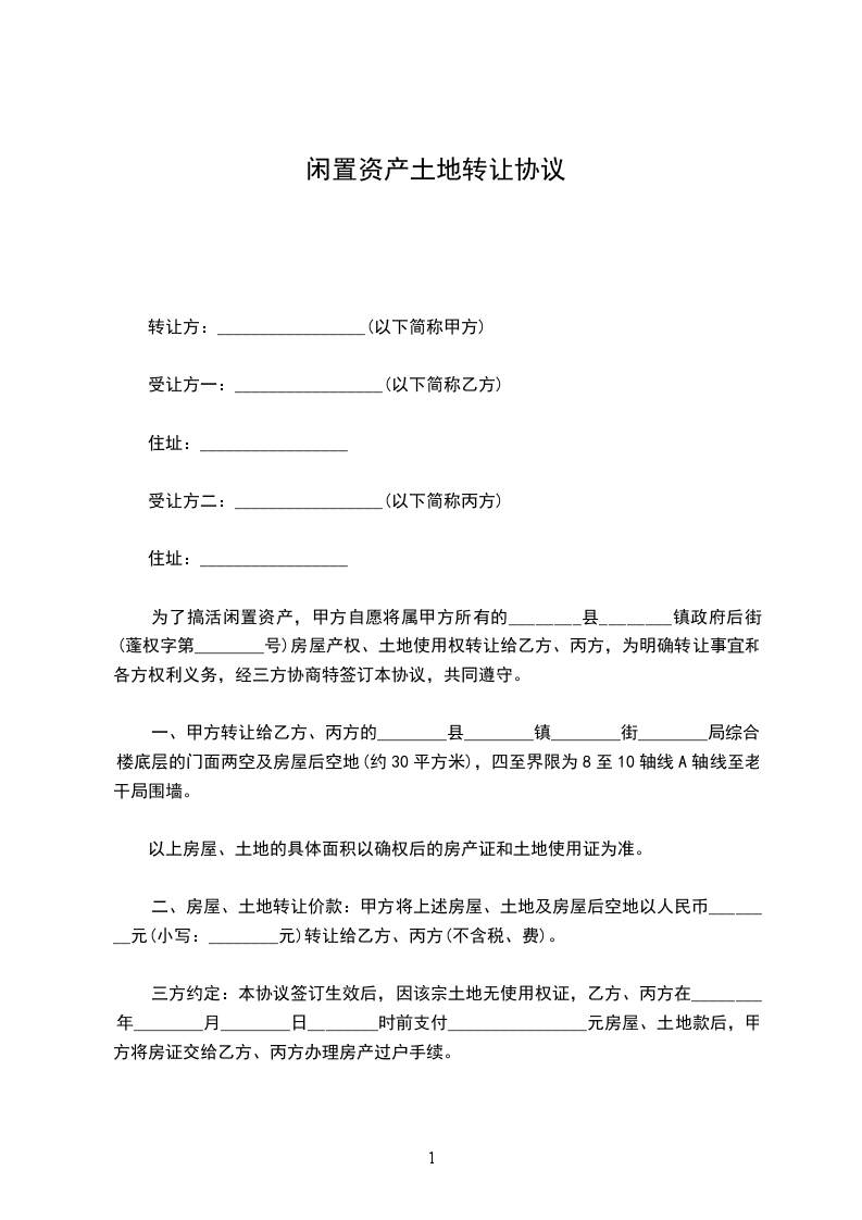 永久性转让,自转让之日(即签订合同)起,该块土地的使用权,经营权归乙方所有。若遇政府或其他任何形式的征用或征收,所有赔偿均归乙方所有。甲方不得做任何干涉。