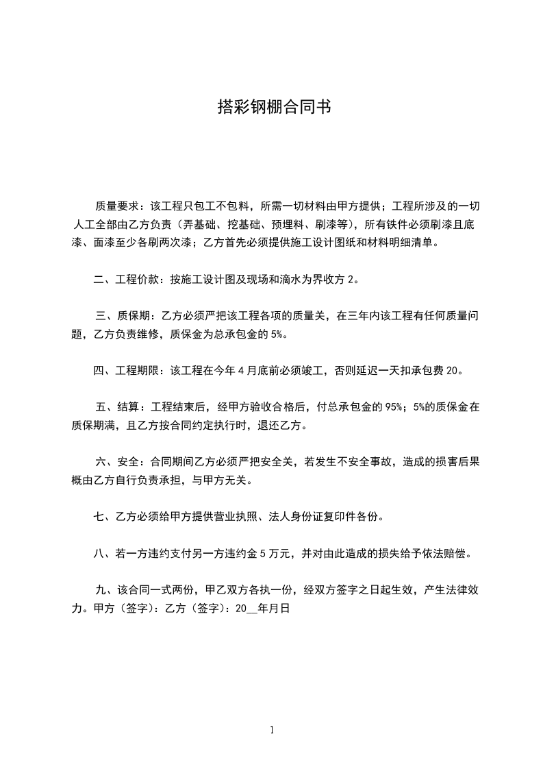 6、在施工期间,甲方不得任意乱锯乙方的钢管否则按6米管来算元一个锯口来赔偿给乙方。