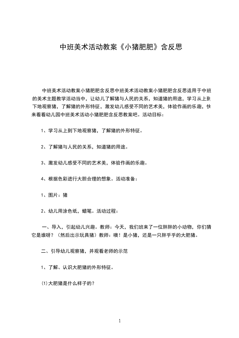 一、童谣小肥猪引入。师:小猪宝宝,过来让妈妈看看你们长得怎么样?(幼儿围在老师身边一起律动童谣。