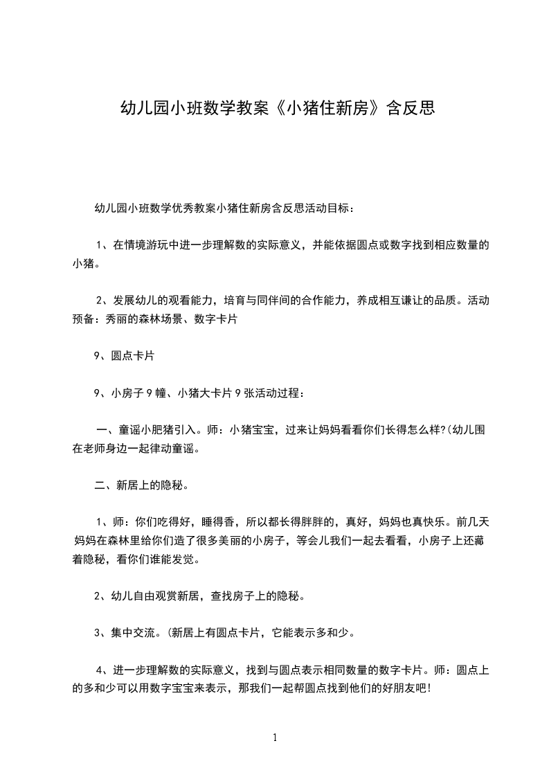 6、交待妈妈设计卡片的用意。师:刚刚呀你们都说了好多好多卡片标记的用处,是的,不同的地方标记有不同的用处,今日呀妈妈用这些卡片就是告知你们,每幢房子上面圆点或数字是几就住几只小猪。