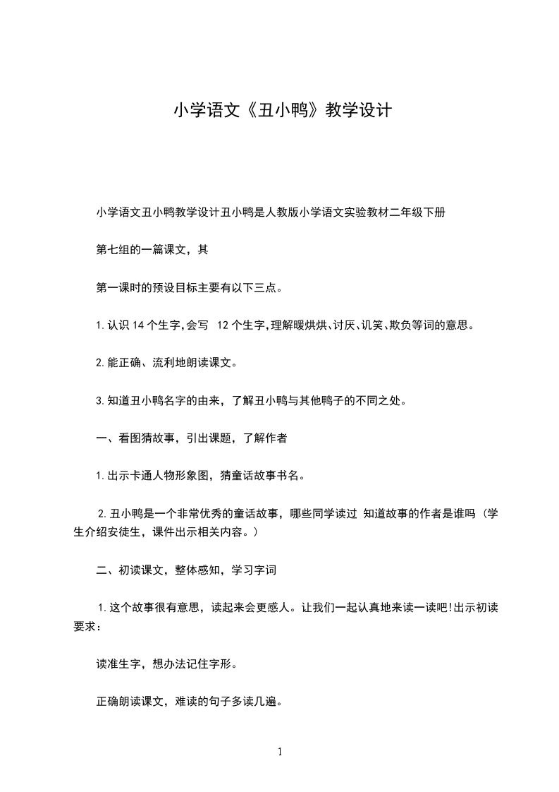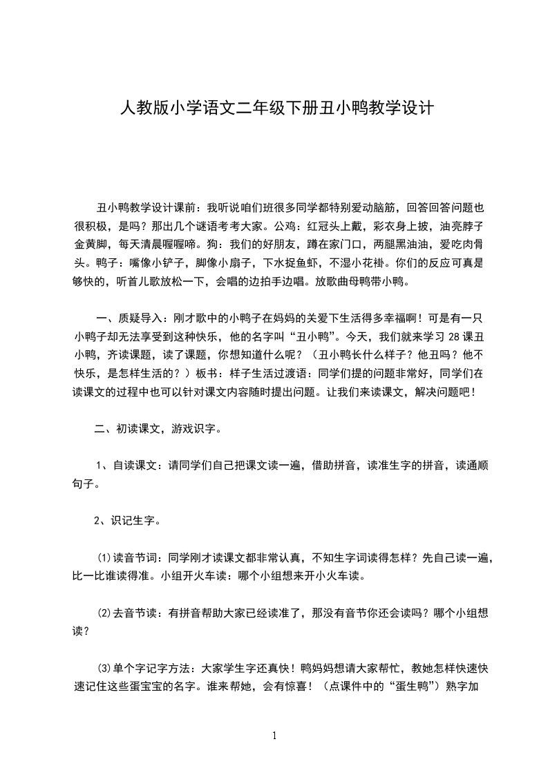 丑小鸭教学设计方案朔州市怀仁县何教办郭XX课题名称丑小鸭科目语文年级二年级教学时间课时学习者分析能从学生实际出发,注重教学思想的渗透。课堂设计的问题具有启发性、整合性。创设的情境符合学生实际,有趣味性,能引发学生的思考教学目标