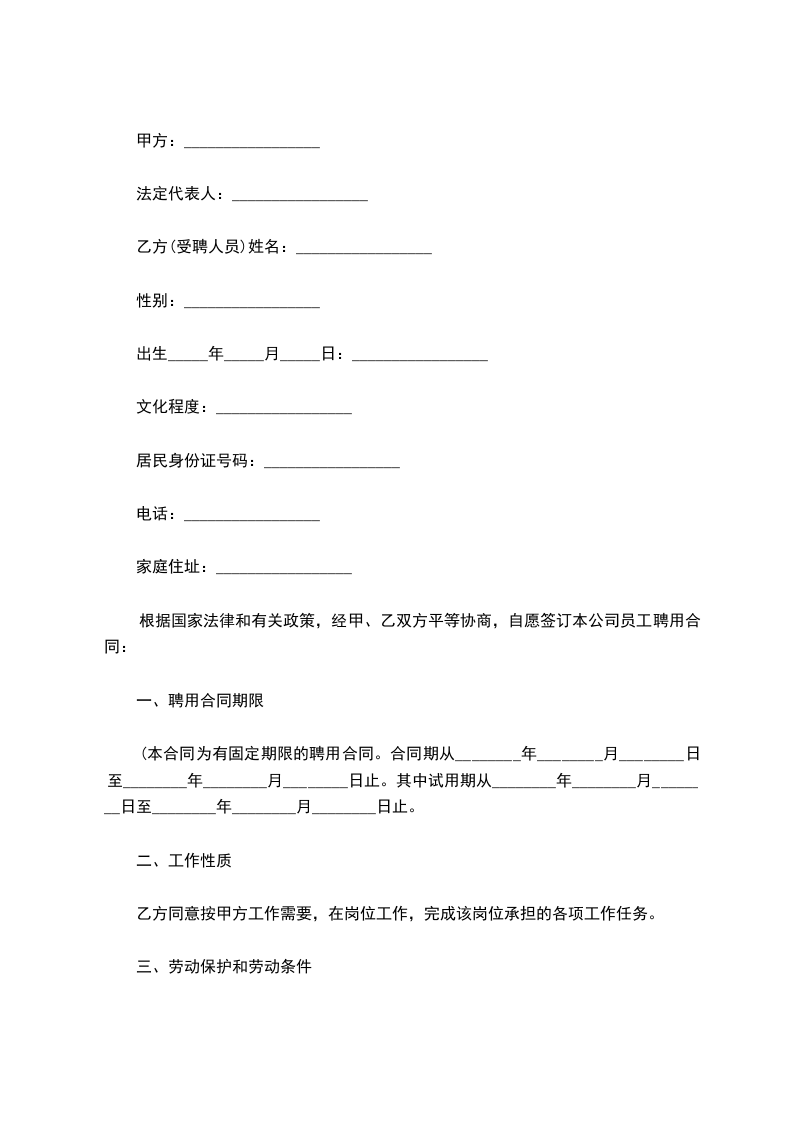 根据国家法律和有关政策,经甲、乙双方平等协商,自愿签订本公司员工聘用合同: