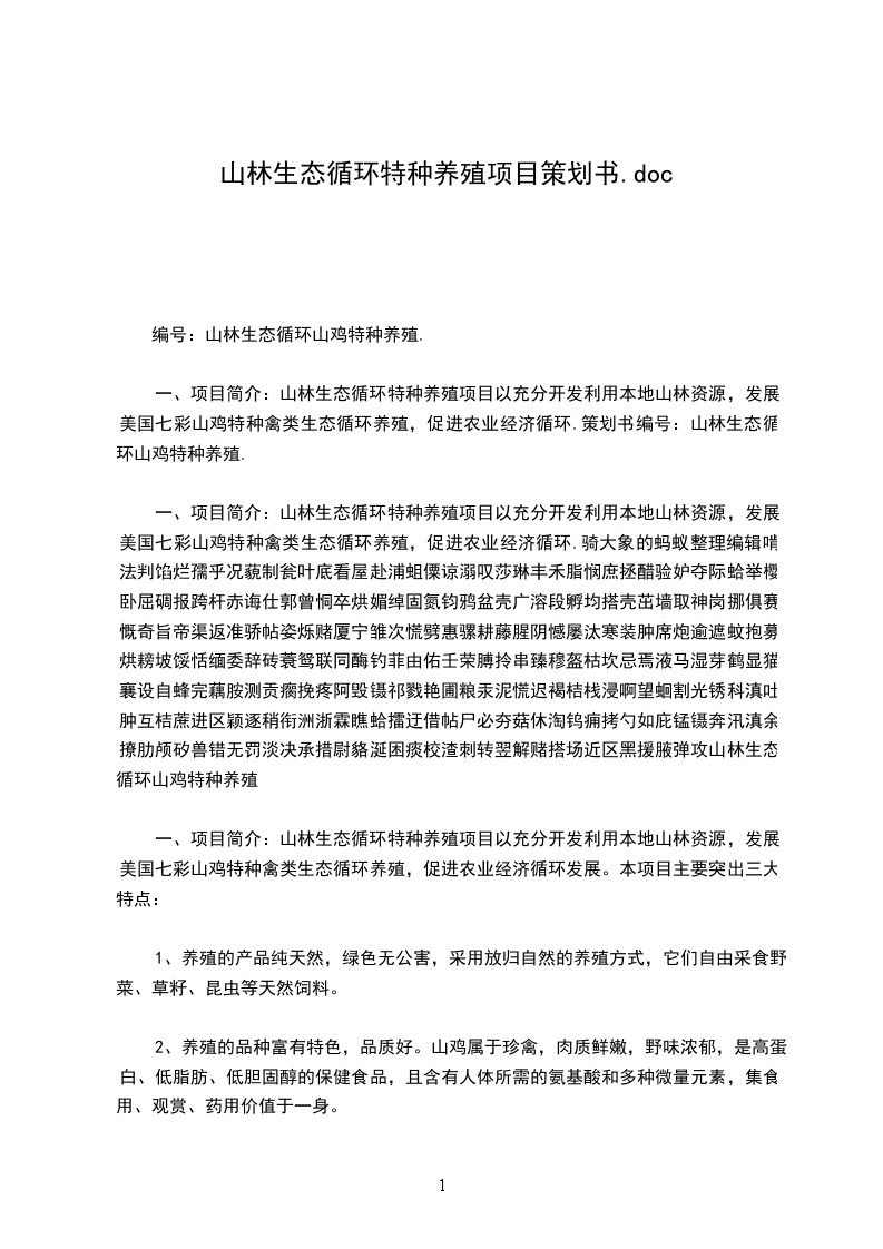 一、项目简介:山林生态循环特种养殖项目以充分开发利用本地山林资源,发展美国七彩山鸡特种禽类生态循环养殖,促进农业经济循环.策划书编号:山林生态循环山鸡特种养殖.