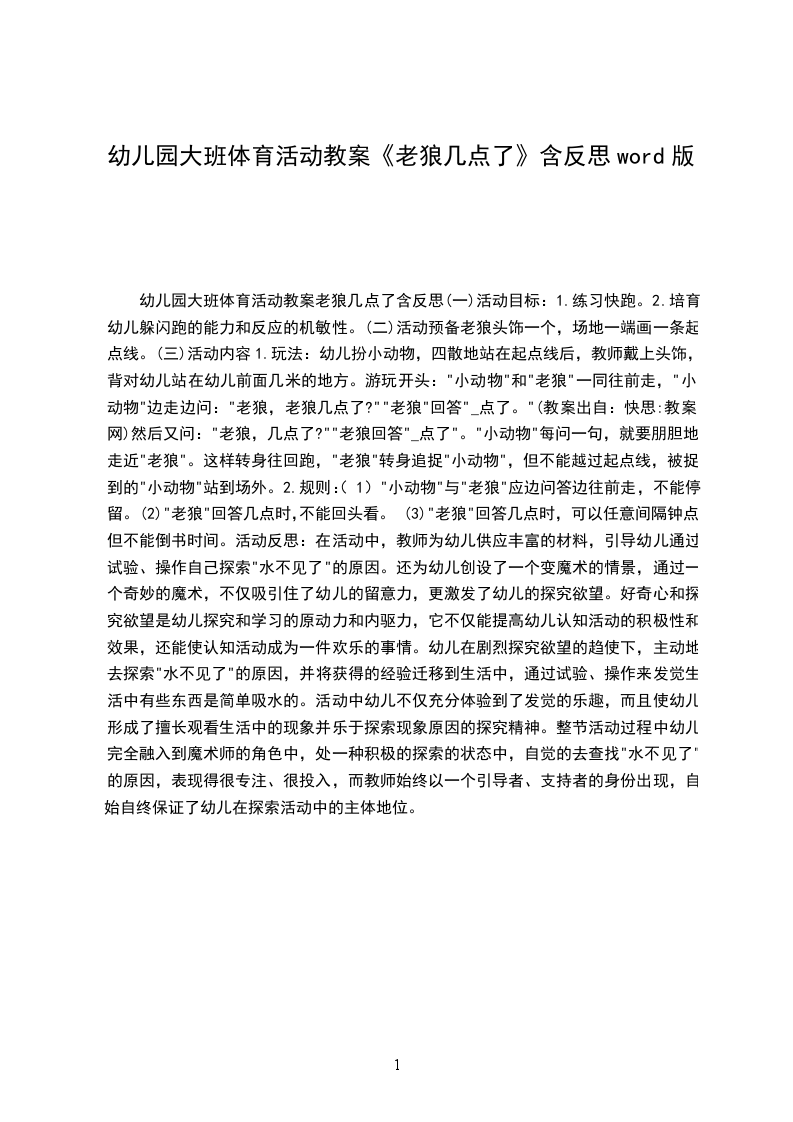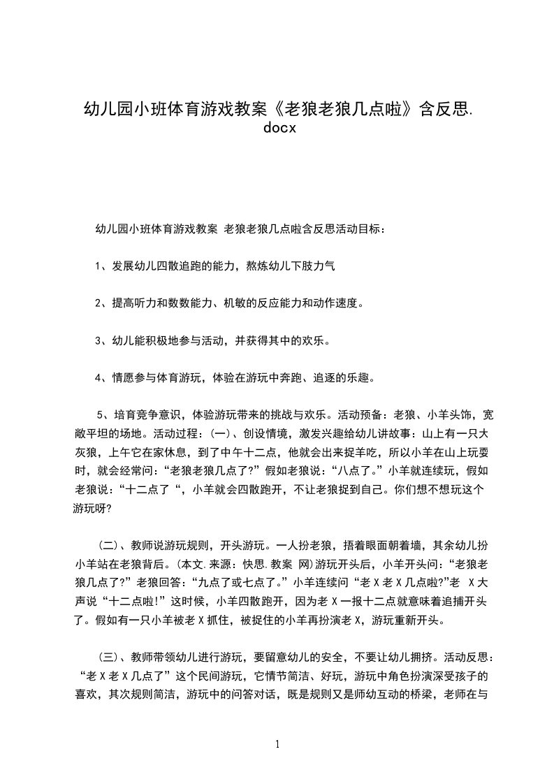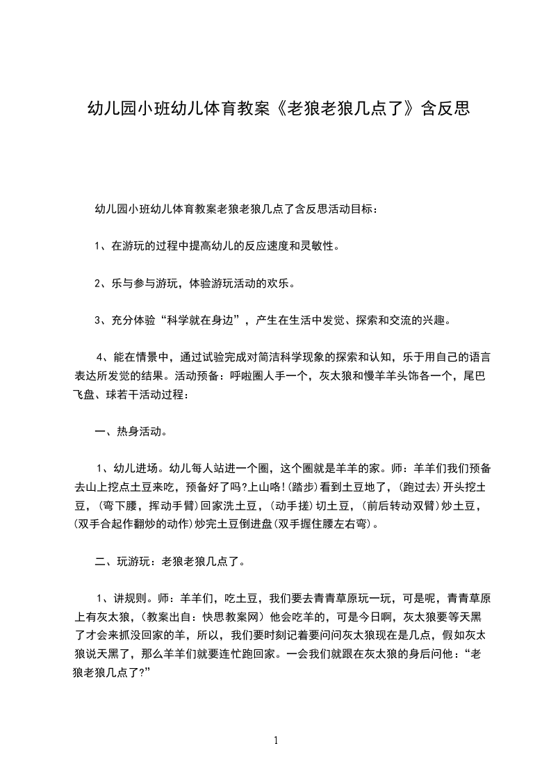 幼儿园小班幼儿体育教案老狼老狼几点了含反思活动目标: