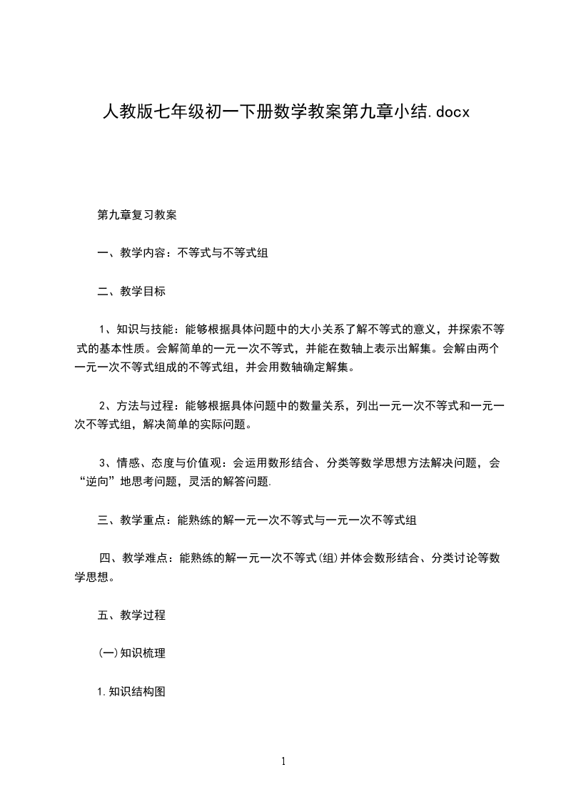 1、知识与技能:能够根据具体问题中的大小关系了解不等式的意义,并探索不等式的基本性质。会解简单的一元一次不等式,并能在数轴上表示出解集。会解由两个一元一次不等式组成的不等式组,并会用数轴确定解集。