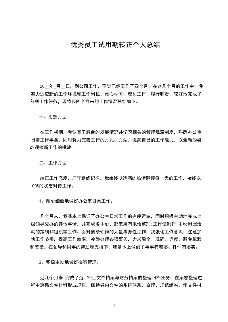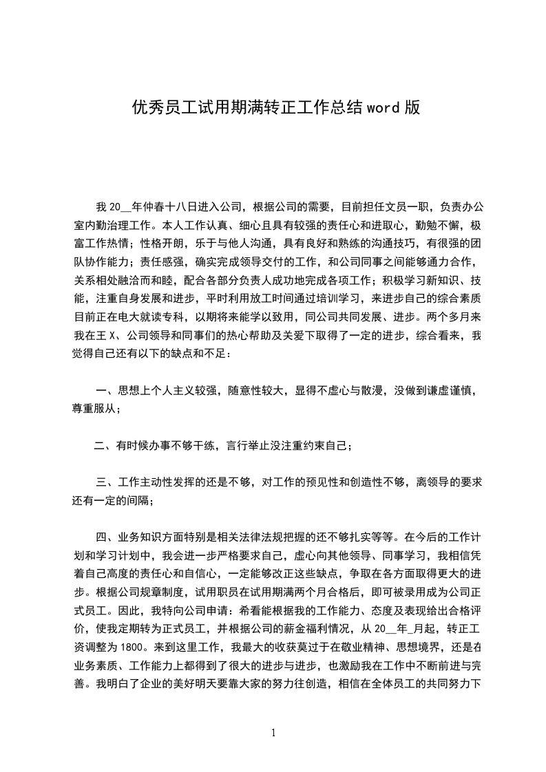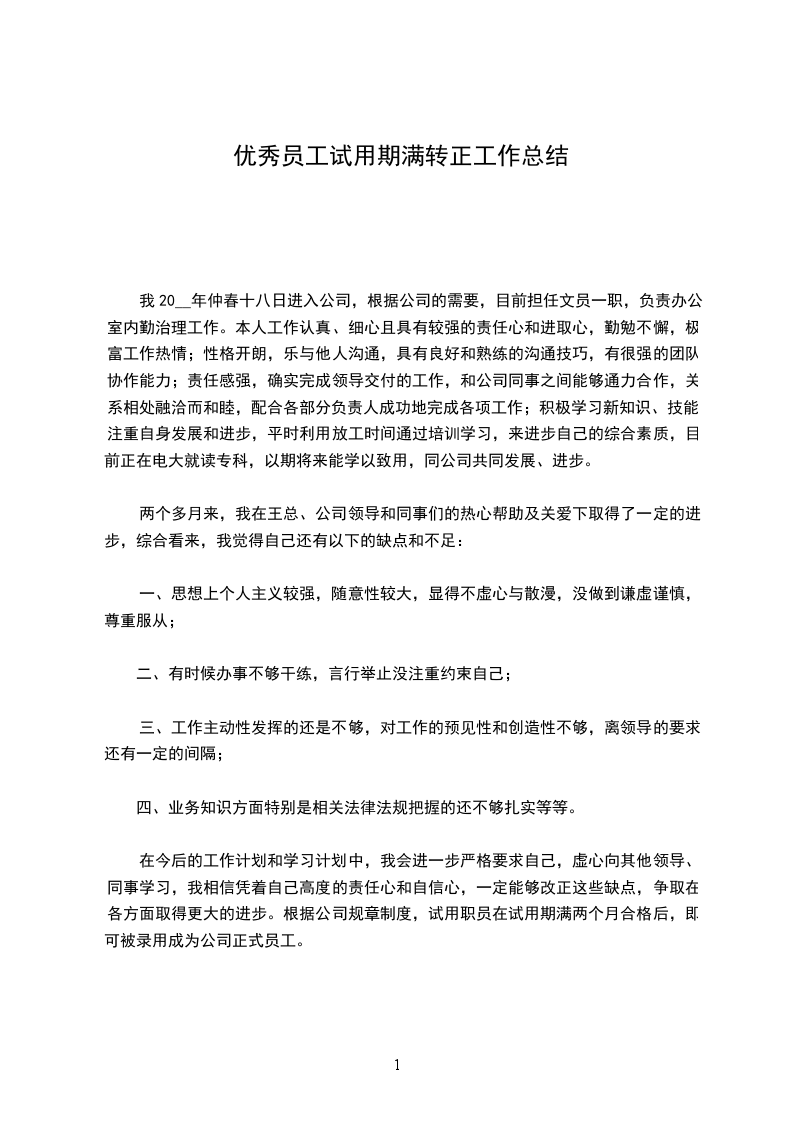 四、业务知识方面特别是相关法律法规把握的还不够扎实等等。在今后的工作计划和学习计划中,我会进一步严格要求自己,虚心向其他领导、同事学习,我相信凭着自己高度的责任心和自信心,一定能够改正这些缺点,争取在各方面取得更大的进步。根据公司规章制度,试用职员在试用期满两个月合格后,即可被录用成为公司正式员工。因此,我特向公司申请:希看能根据我的工作能力、态度及表现给出合格评价,使我定期转为正式员工,并根据公司的薪金福利情况,从20__年_月起,转正工资调整为1800。来到这里工作,我最大的收获莫过于在敬业精神、思想境界,还是在业务素质、工作能力上都得到了很大的进步与进步,也激励我在工作中不断前进与完善。我明白了企业的美好明天要靠大家的努力往创造,相信在全体员工的共同努力下,企业的美好明天更辉煌。在以后的工作中我将更加努力上进,希看上级领导批准转正。篇二:回顾这一年来的工作,我在公司领导及各位同事的支持与帮助下,严格要求自己,按照公司的要求,较好地完成了自己的本职工作。通过一年来的学习与工作,工作模式上有了新的突破,工作方式有了较大的改变,现将一年来的工作情况总结如下: