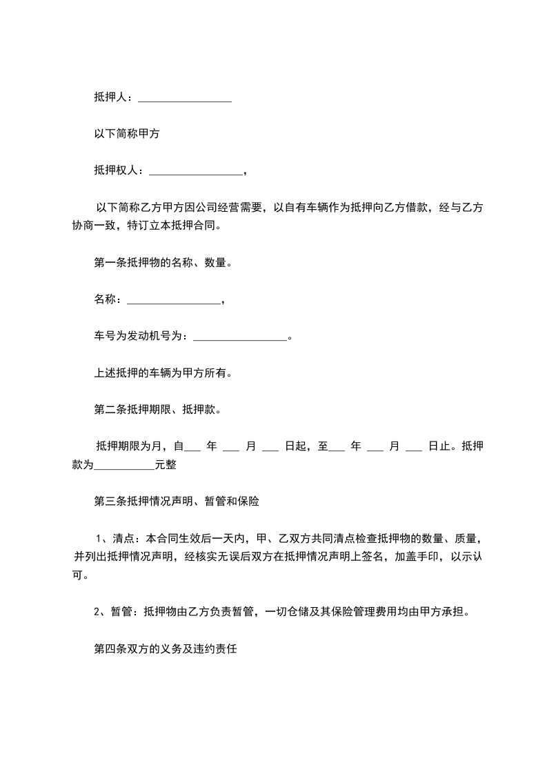 以下简称乙方甲方因公司经营需要,以自有车辆作为抵押向乙方借款,经与乙方协商一致,特订立本抵押合同。