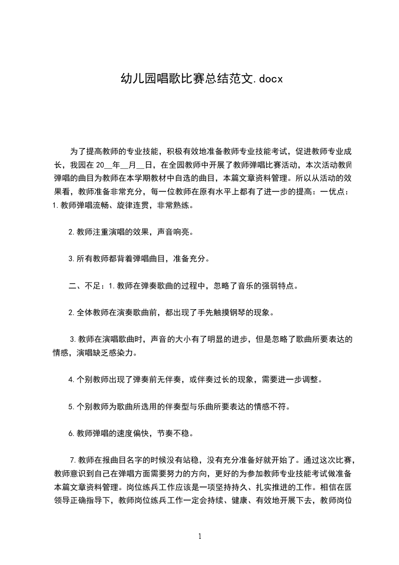 为了提高教师的专业技能,积极有效地准备教师专业技能考试,促进教师专业成长,我园在20__年__月__日,在全园教师中开展了教师弹唱比赛活动,本次活动教师弹唱的曲目为教师在本学期教材中自选的曲目,本篇文章资料管理。所以从活动的效果看,教师准备非常充分,每一位教师在原有水平上都有了进一步的提高:一优点: