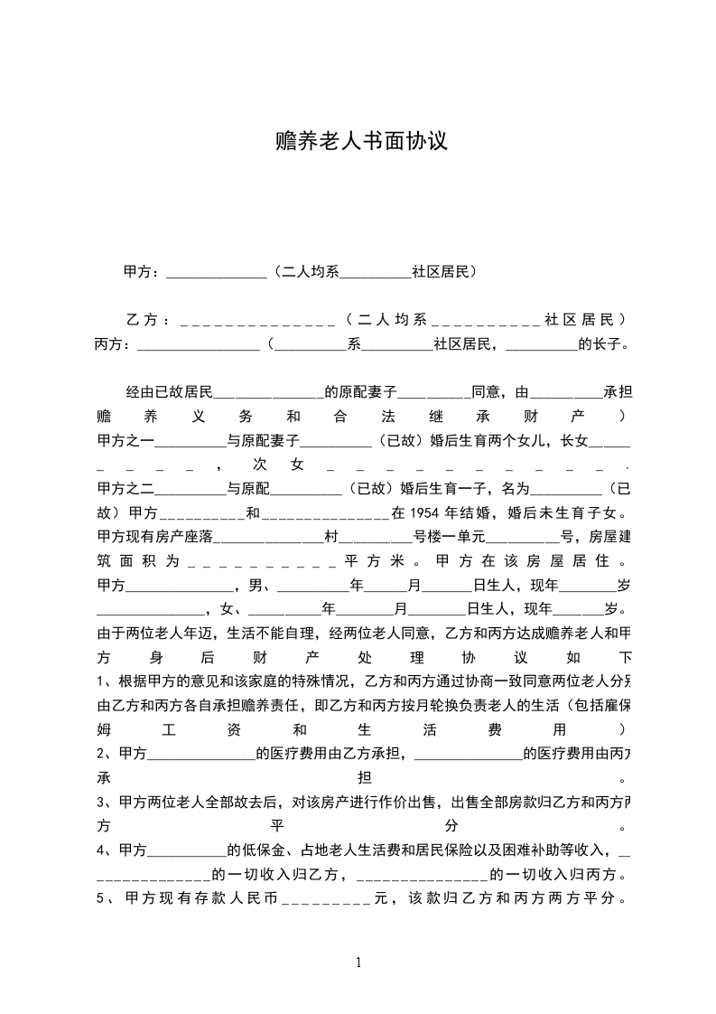 丙方:_________________(__________系__________社区居民,__________的长子。