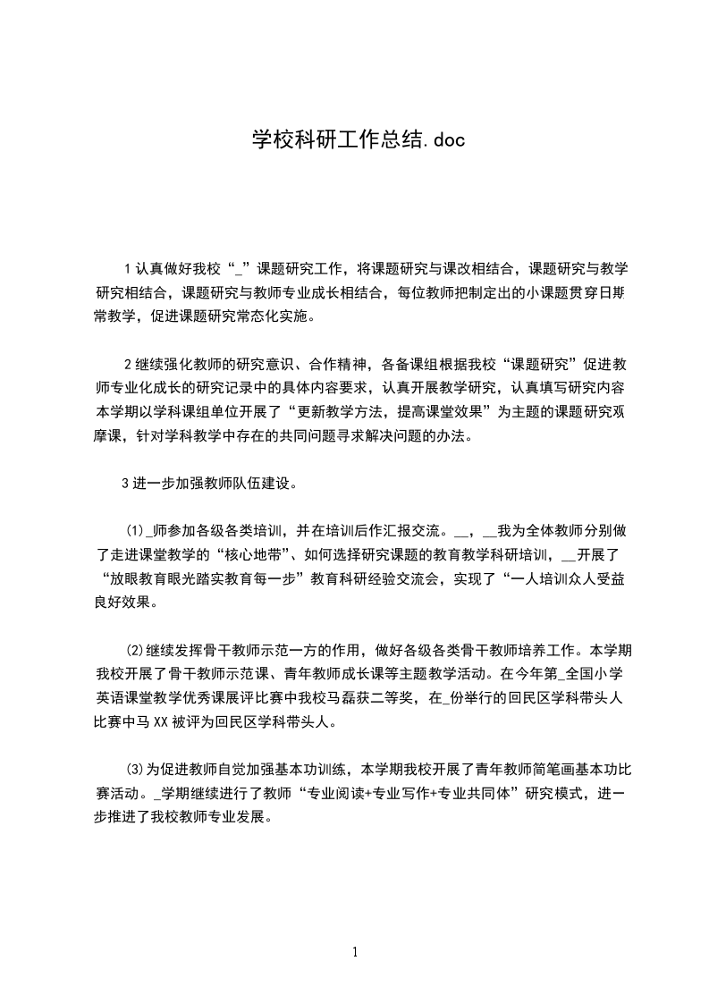1认真做好我校“_”课题研究工作,将课题研究与课改相结合,课题研究与教学研究相结合,课题研究与教师专业成长相结合,每位教师把制定出的小课题贯穿日期常教学,促进课题研究常态化实施。
