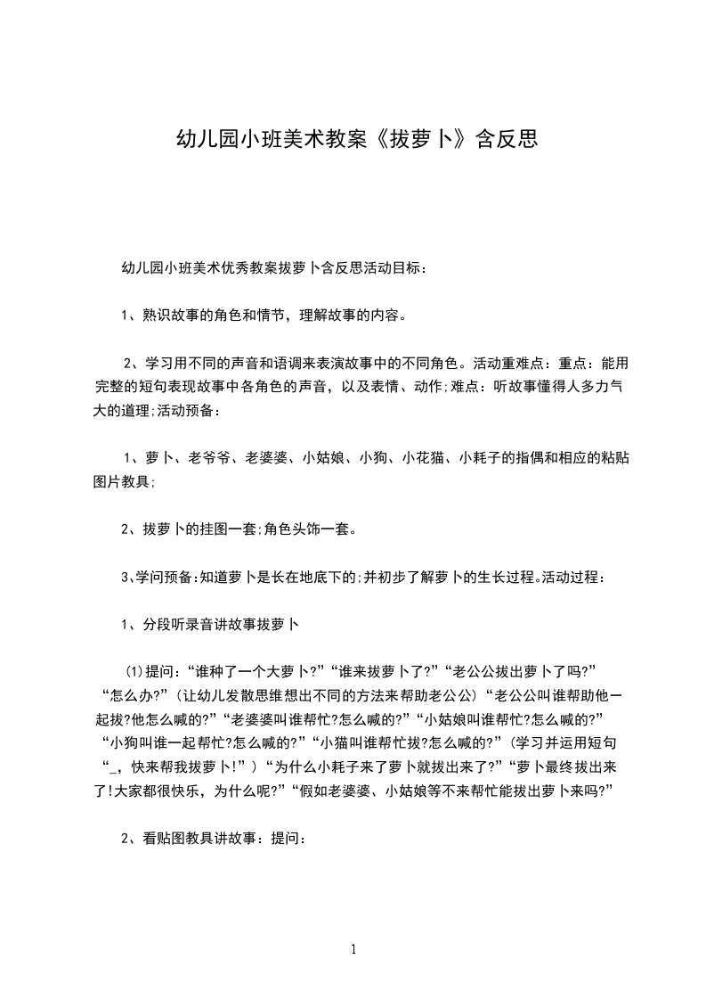 3.教师提问:“小朋友,请你们说说,图上的人在干什么?二.教师讲故事拔萝卜让幼儿欣赏和倾听。三.请幼儿分段欣赏故事,帮助幼儿理解故事。