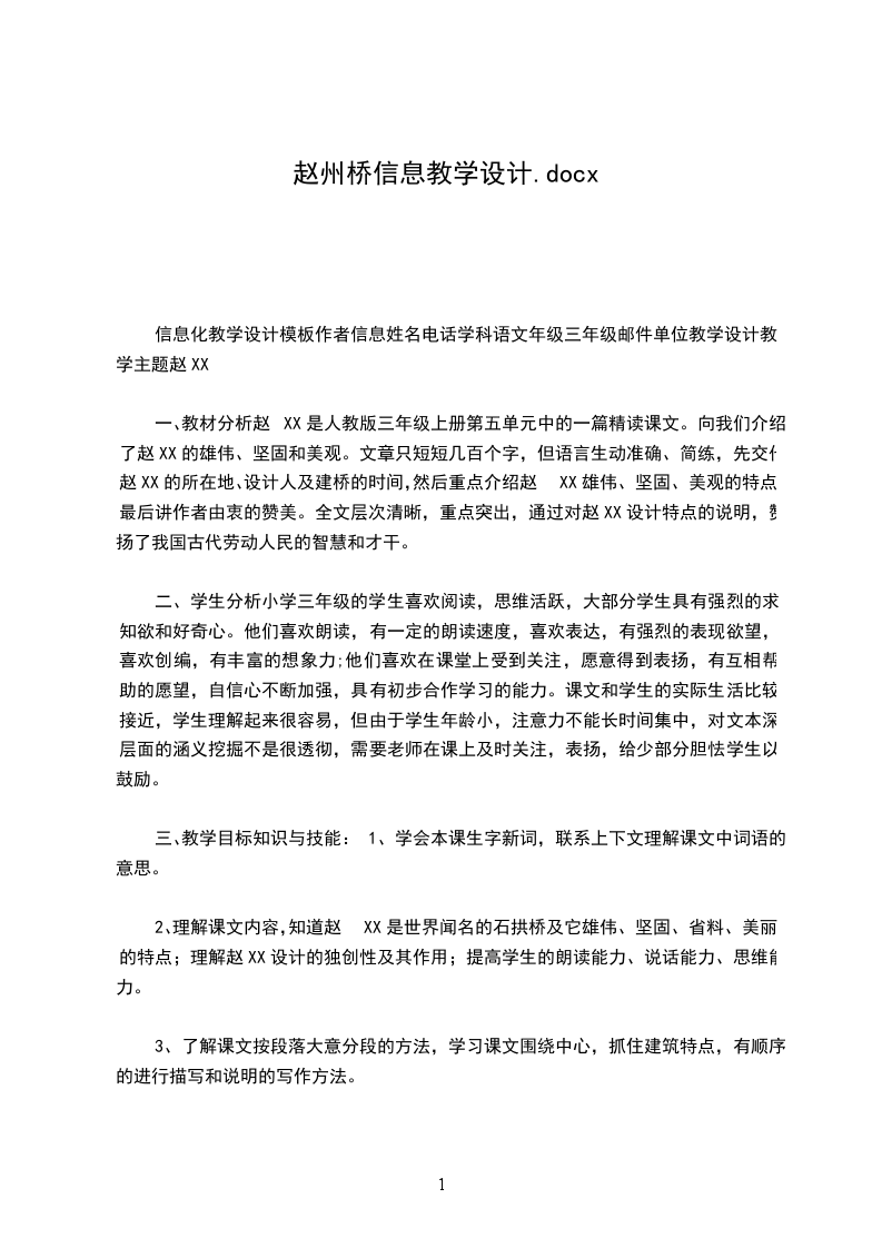 信息化教学设计模板作者信息姓名电话学科语文年级三年级邮件单位教学设计教学主题赵XX