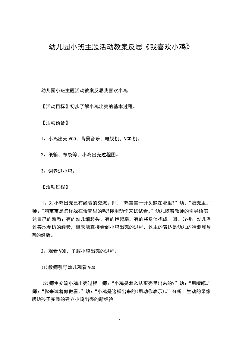 幼儿园小班主题活动教案反思我喜欢小鸡