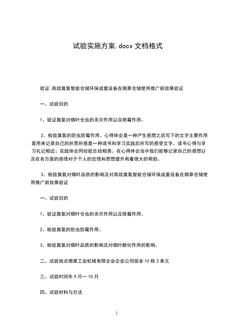 (4)检验臭氧的防虫、防霉作用以及对烟叶品质和自然醇化的影响取包装完好的片烟四包(800公斤)、把烟二包(00公斤),处理仓和对照仓各放3包。然后将处理仓和对照仓分别密封好。检查无误后,参照粮食部门应用方法与浓度开机试验,定期开机,分别在6个月、2个月时检查烟叶长虫长霉情况,同时取样进行对比评吸和化学分析。为取得准确结果,以上各项试验还必须在实仓进行,烟叶样品量要大。为便于试验的进行,以上各项试验可根据实际情况安排同时进行。在试验进行过程中,可根据实际情况对试验项目和实验方法进行适当改变和调整。