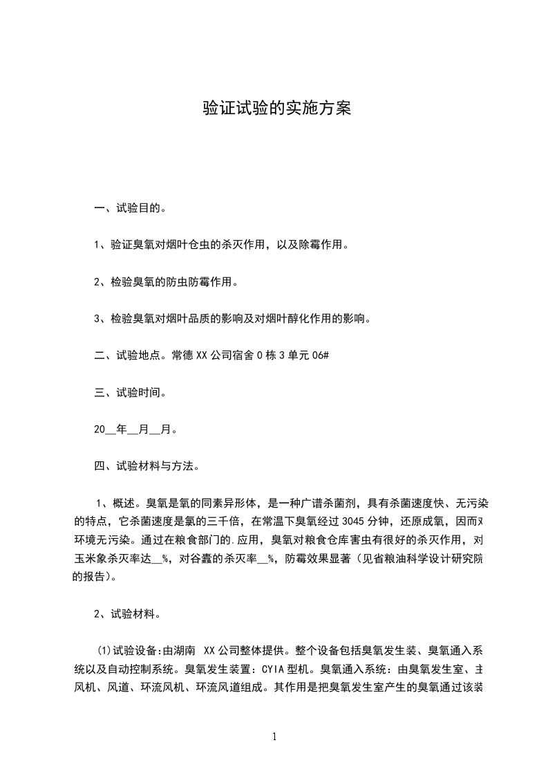 二、试验地点。常德XX公司宿舍0栋3单元06#