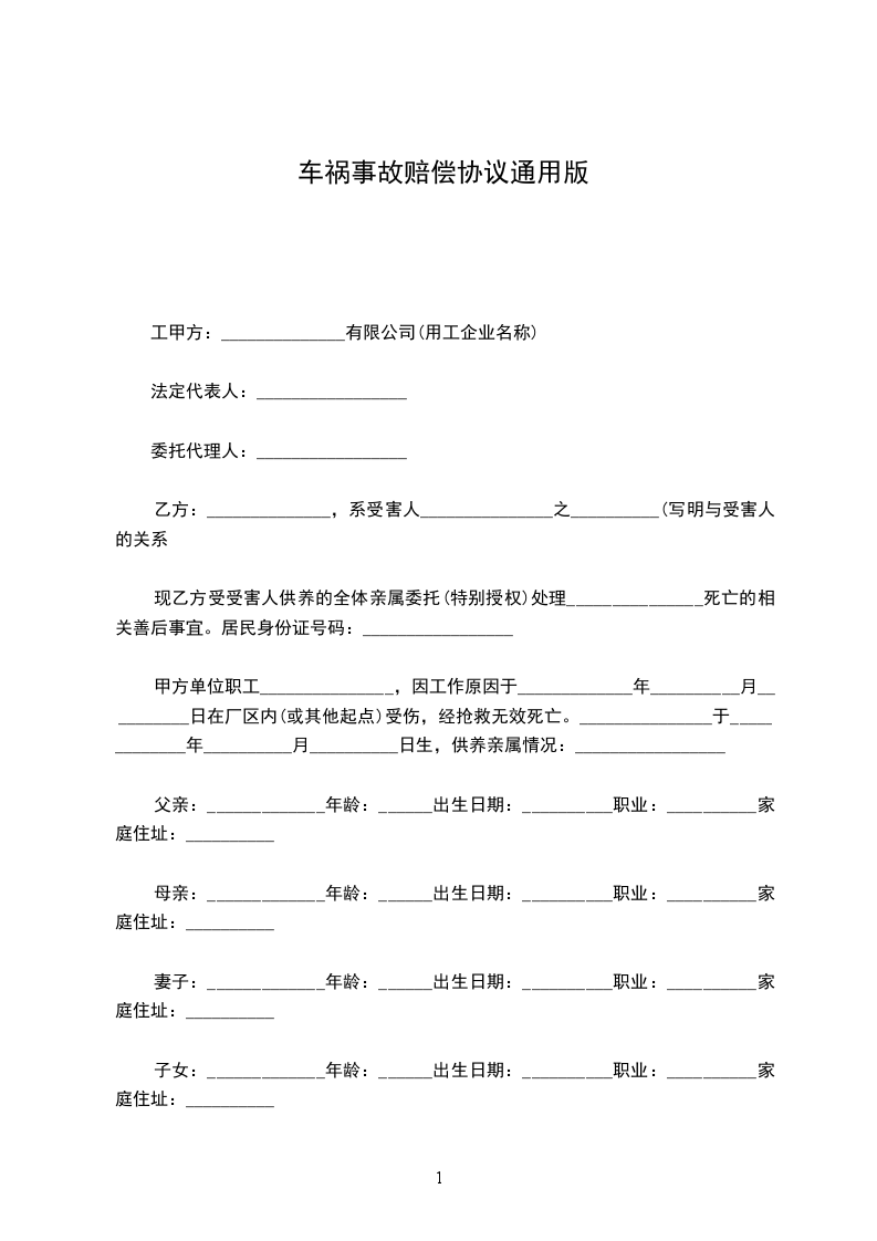 为妥善处理_______________死亡的善后事宜,依据《中华人民共和国劳动法》、《工伤保险条例》等有关法律法规,现甲乙双方就赔偿,双方在平等协商的基础上,自愿达成如下协议:_________________