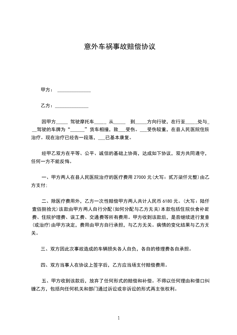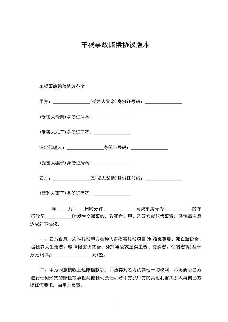 一、甲方赔偿乙方丧葬补助金_______________元;