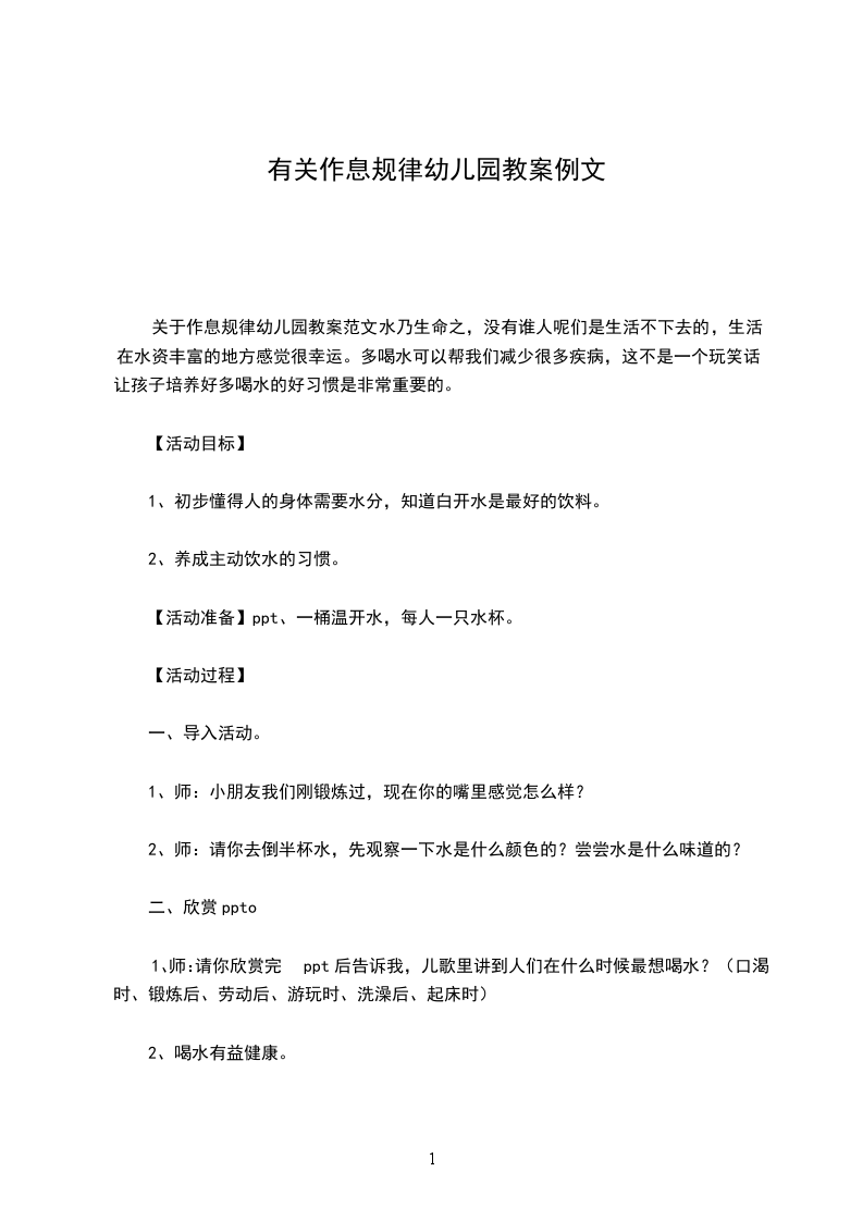 (1)老师:我们不渴的时候要喝水吗?为什么?(引导孩子知道人需要随时补充水分,可以帮助我们通过尿液排出体内毒素,从而使我们的身体更加健康。