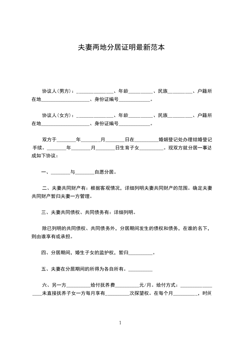 一、________与________自愿分居。