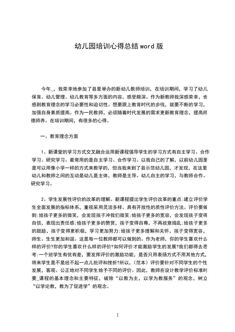 今年_,我荣幸地参加了县里举办的新幼儿教师培训,在培训期间,学习了幼儿保育、幼儿管理、幼儿教育等多方面的内容,感受颇深。作为新教师我深感荣幸,也感到教育理念的学习必要性和迫切性。想要跟上教育时代的步伐,就要不断的学习,加强自身素质提高。作为一民教师,必须随着时代发展的需求更新教育理念,提高师德师养。在培训期间,有很多的心得。