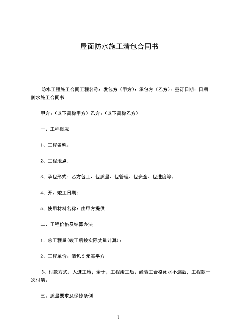 3、付款方式:人进工地;余款元;工程竣工后、经验工合格闭水不漏后,工程款一次付清。