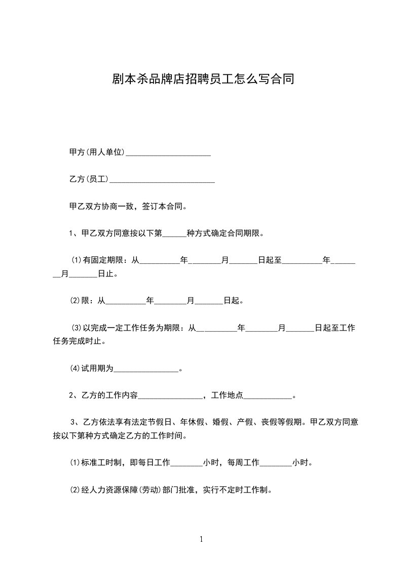 1、甲乙双方同意按以下第______种方式确定合同期限。