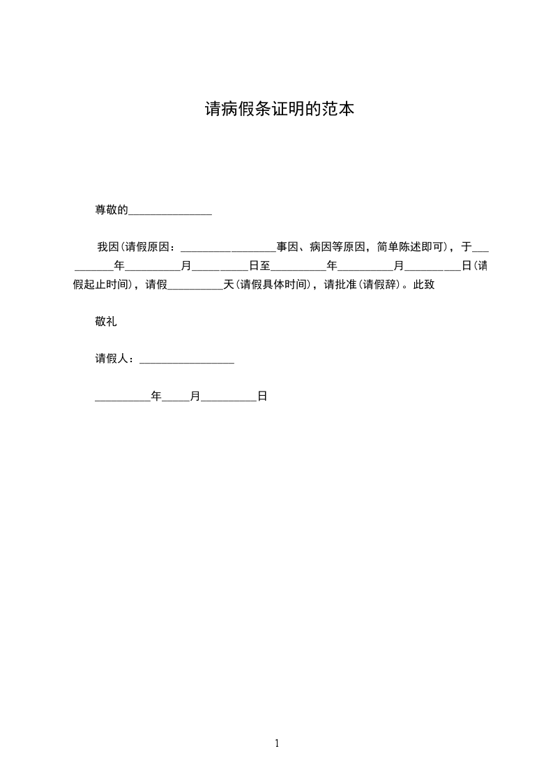 我因(请假原因:_________________事因、病因等原因,简单陈述即可),于__________年__________月__________日至__________年__________月__________日(请假起止时间),请假__________天(请假具体时间),请批准(请假辞)。此致