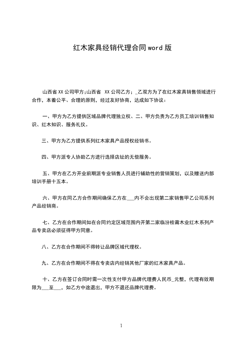 一、甲方为乙方提供区域品牌代理独立权、二、甲方负责为乙方员工培训销售知识、红木知识、服务礼仪。