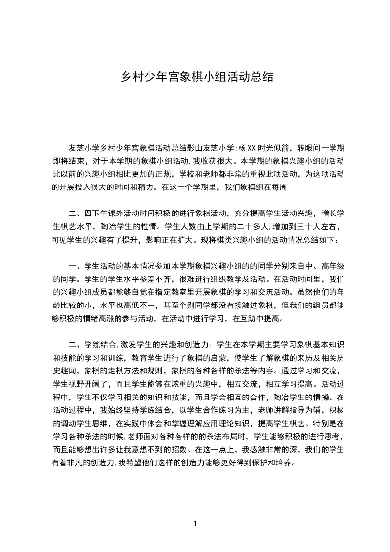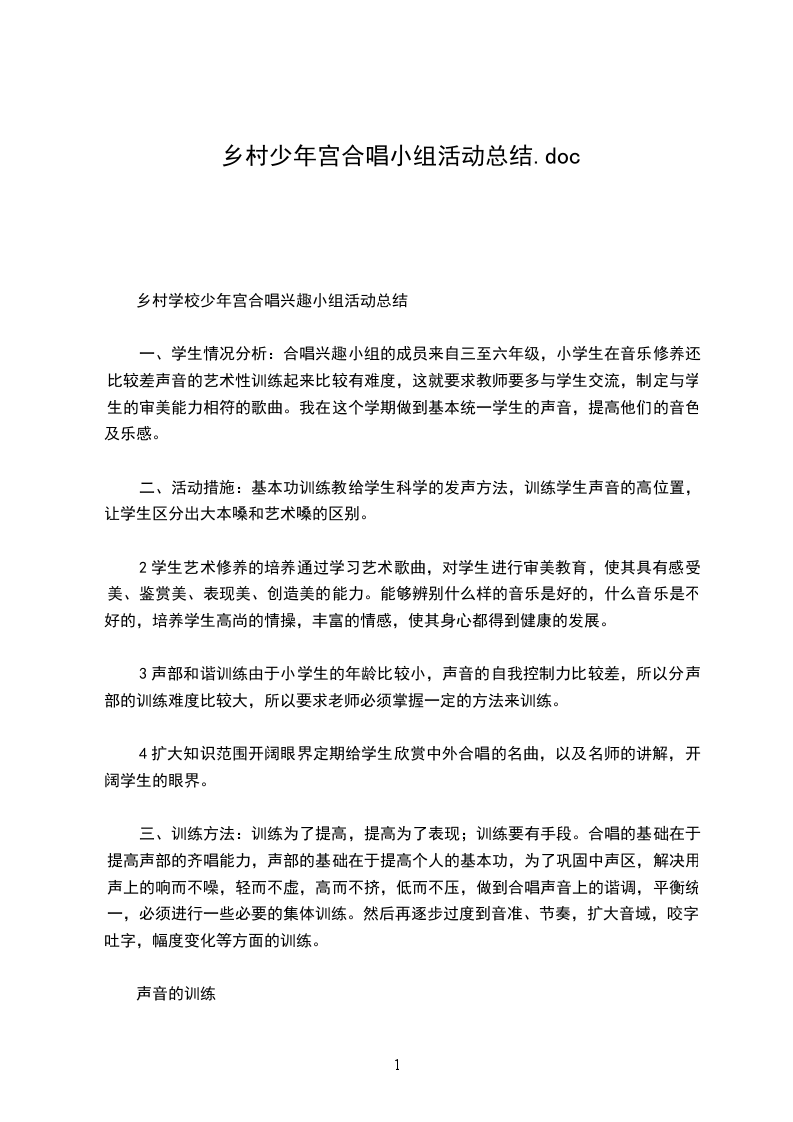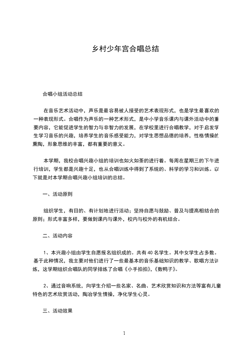 乡村学校少年宫合唱兴趣小组活动总结