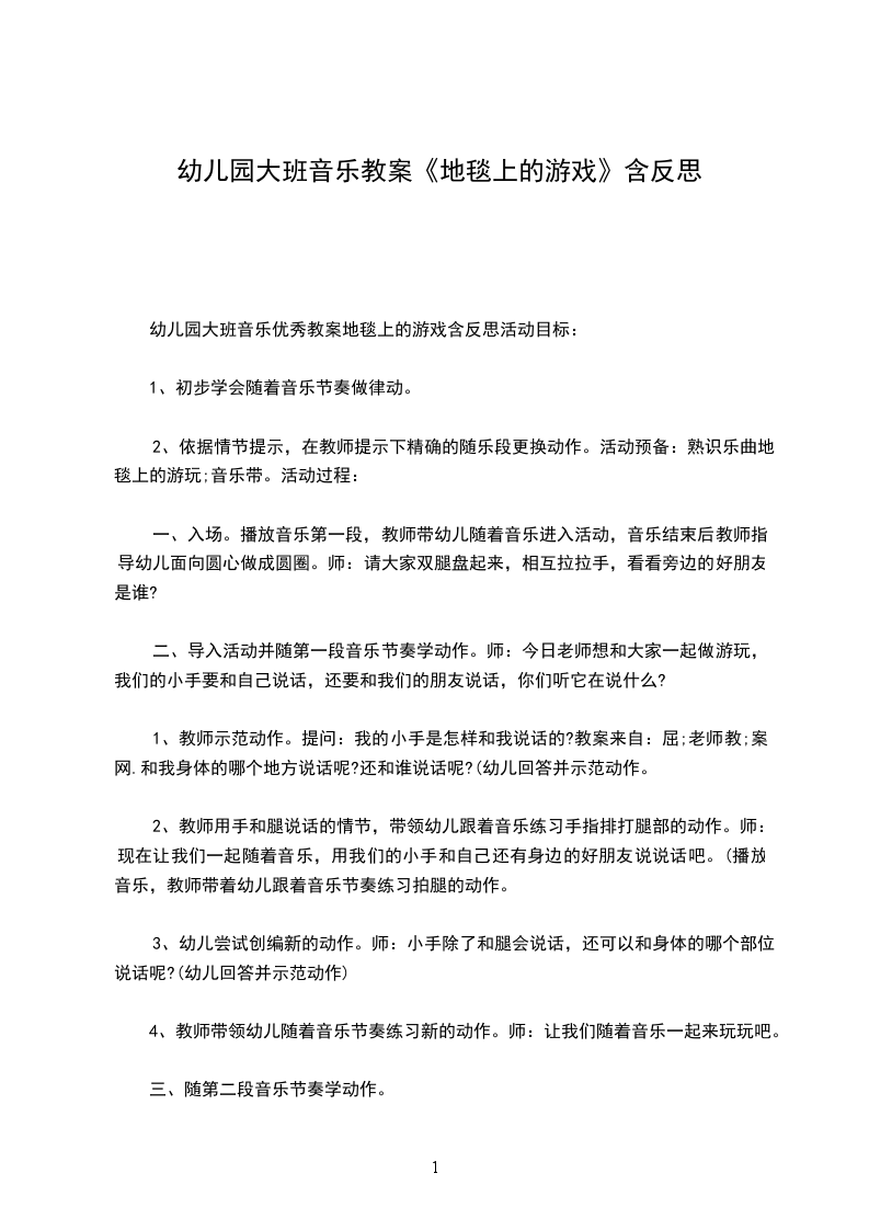 幼儿园大班音乐优秀教案地毯上的游戏含反思活动目标: