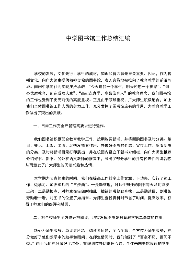 6、根据学校图书馆的实际状况,结合学校工作目标,认真制订有关工作计划,并及时总结经验,发现存在的问题,以更好地为教育教学工作服务。|||||||