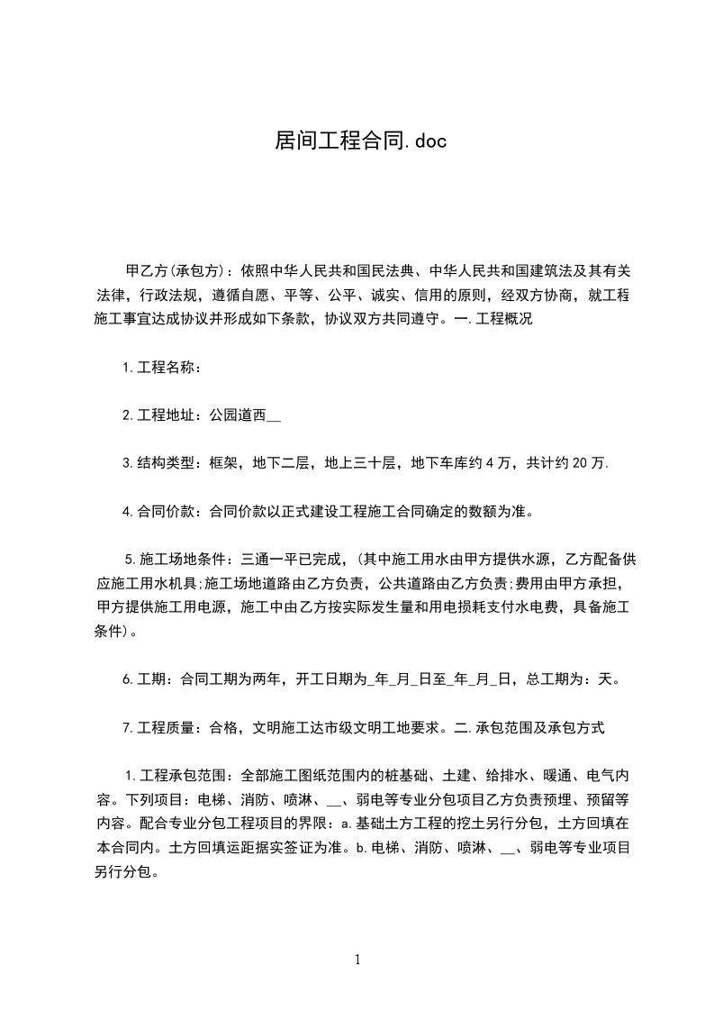 7.工程质量:合格,文明施工达市级文明工地要求。二.承包范围及承包方式