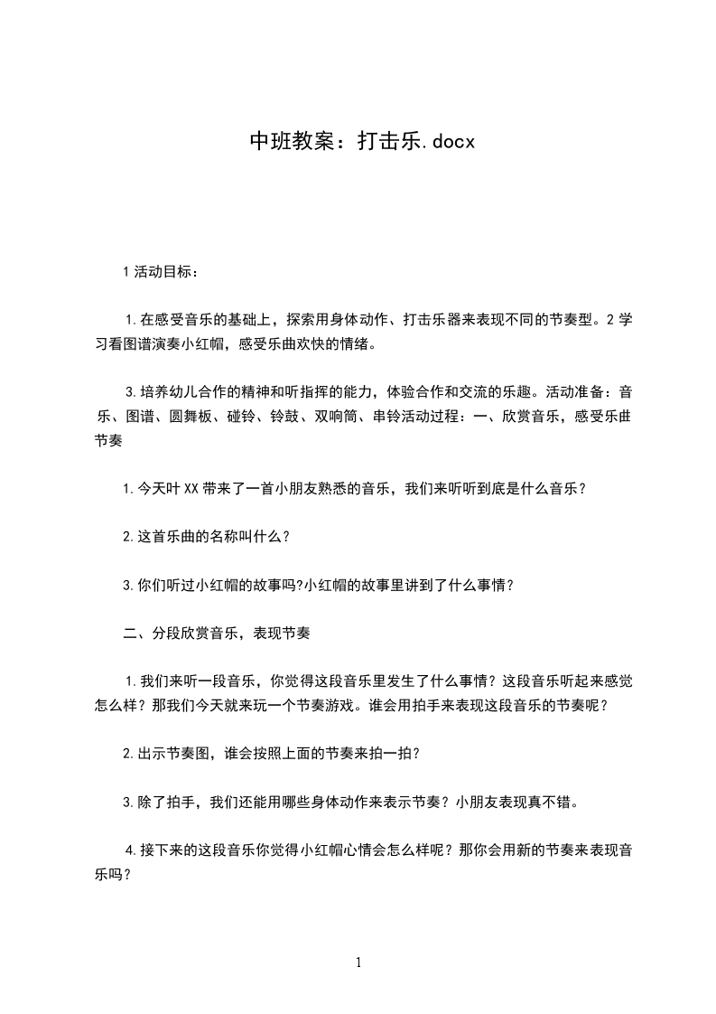 3.进一步发展幼儿的想像力和创造力,让幼儿为乐曲自编舞蹈动作。教学重点:熟识乐曲的结构及节奏,感受乐曲整齐的乐段。教学难点:尝试用各种打击乐器并选择合适的节奏型为乐曲伴奏。活动预备:节奏图、录音机、磁带、打击乐器若干。活动过程: