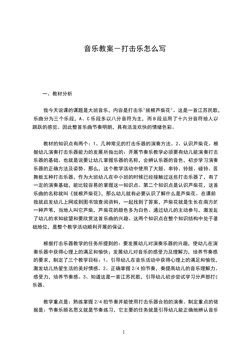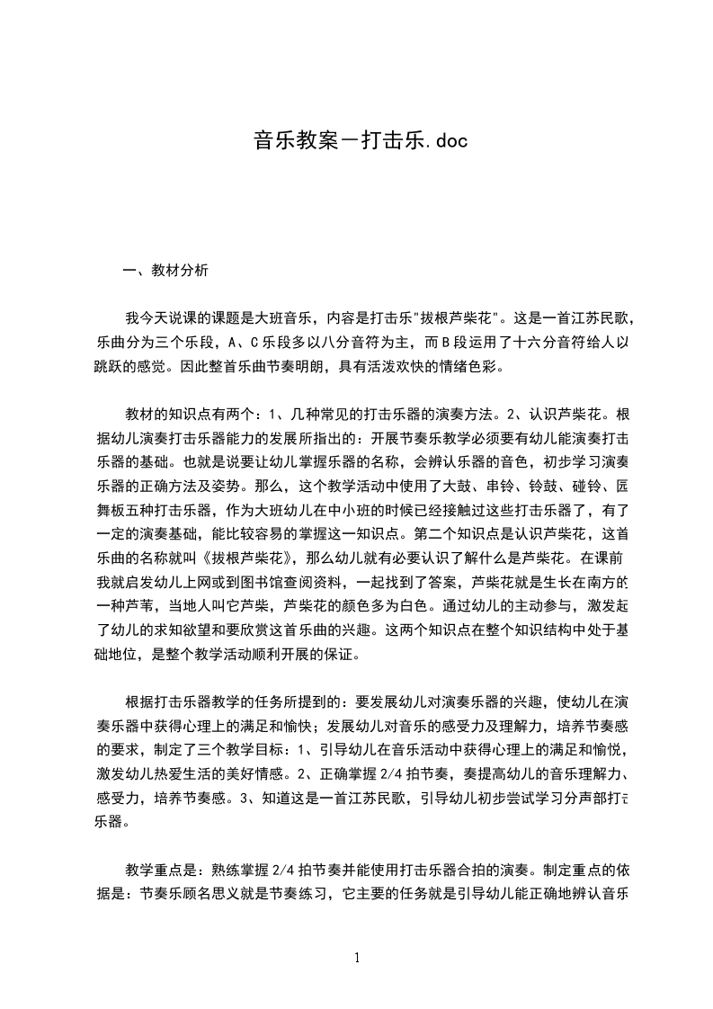 1.教师总结:这首原本就很欢乐的乐曲让我们用打击乐器配上伴奏,显得更加热闹、活泼起来,生活多美好啊,小朋友高不快乐啊?