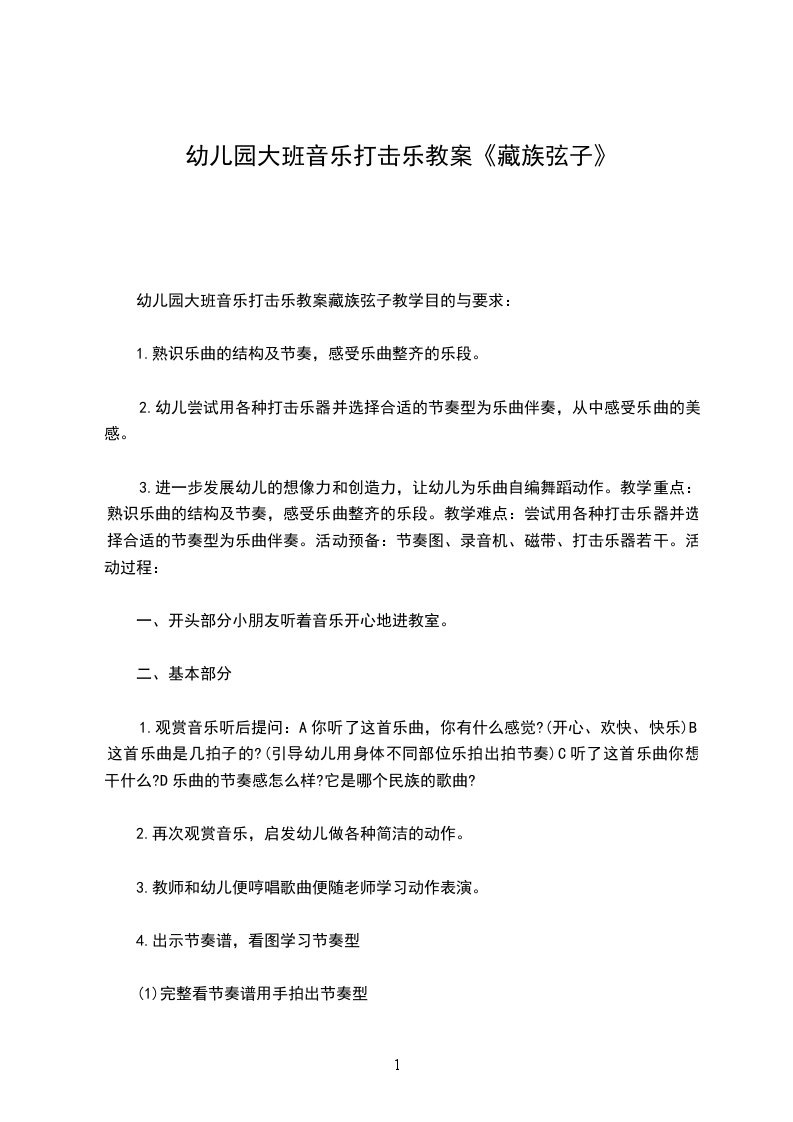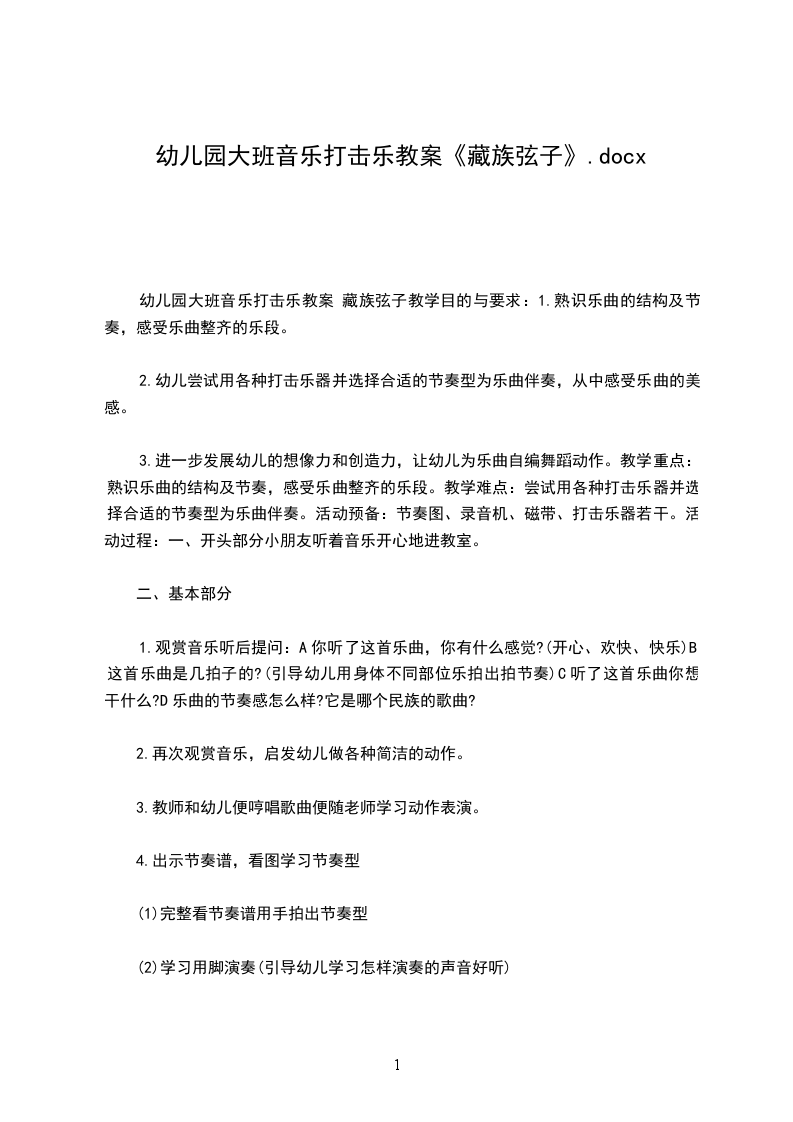 幼儿园大班音乐打击乐教案藏族弦子教学目的与要求: