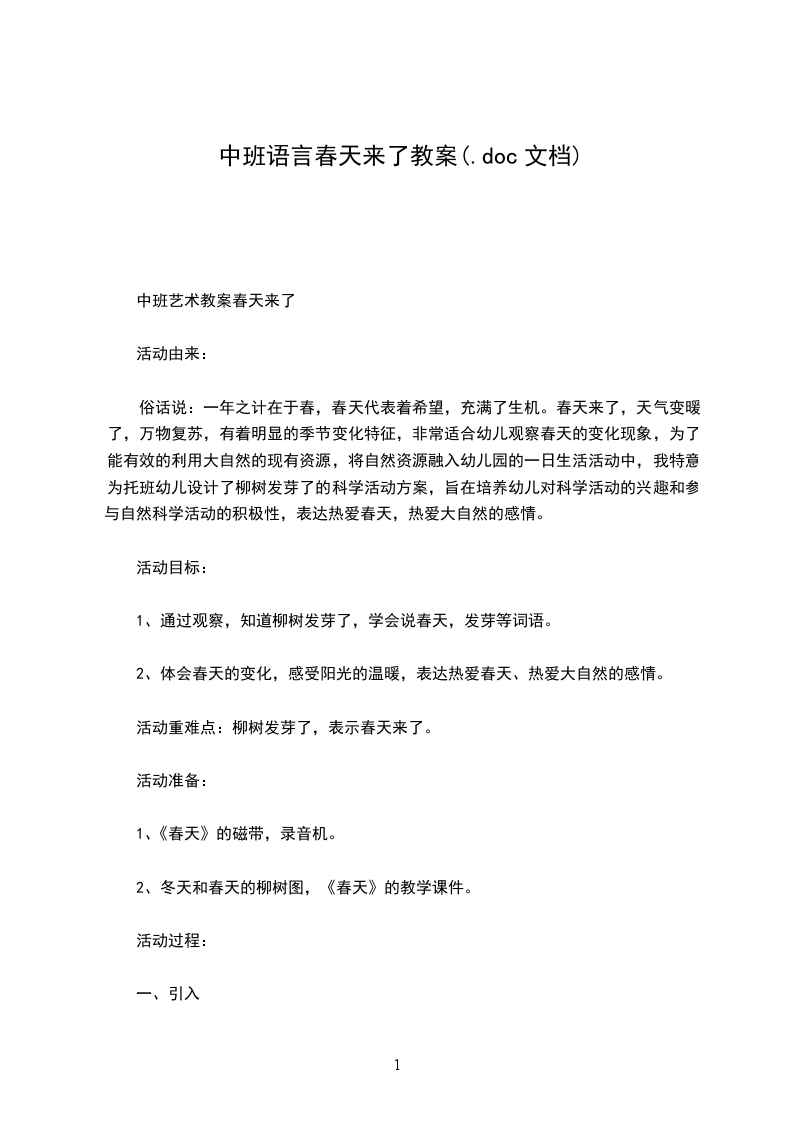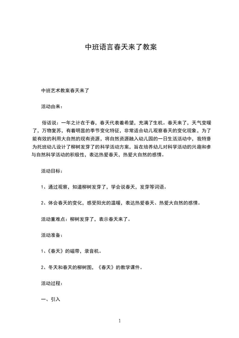 2.春季挂图。活动过程第一,进口对话:天气变暖了。现在是什么季节?春天是什么样的?谁想谈谈春天的变化?第二,扩大1、课件演示(尽量用恰当的语言描述图片的内容)老师:春天来了。春天发生了什么变化?让我们来看看这些地方的变化。(垂柳-桃花-燕子-麦苗-农夫)老师:今天,我们将学习一首诗,它是关于春天的变化。