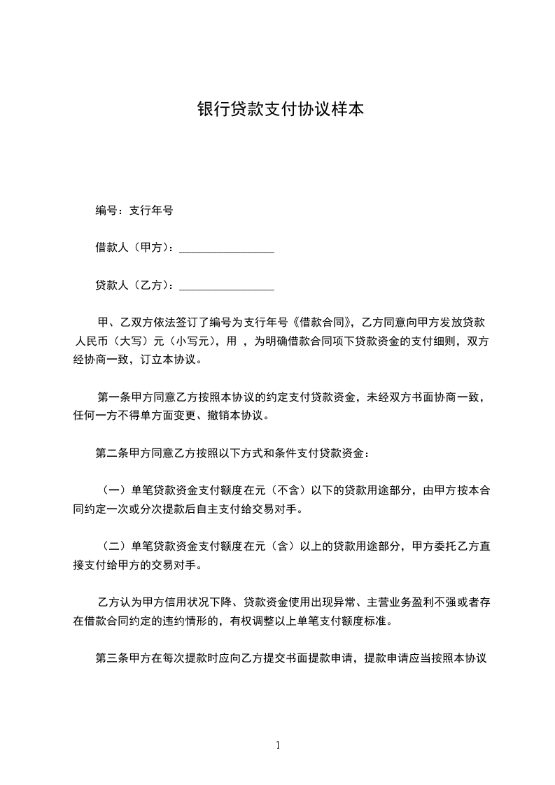 银行贷款后合同样本范文