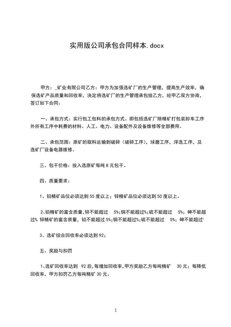 甲方:_矿业有限公司乙方:甲方为加强选矿厂的生产管理,提高生产效率,确保选矿产品质量和回收率,决定将选矿厂的生产管理承包给乙方,经甲乙双方协商,签订如下合同: