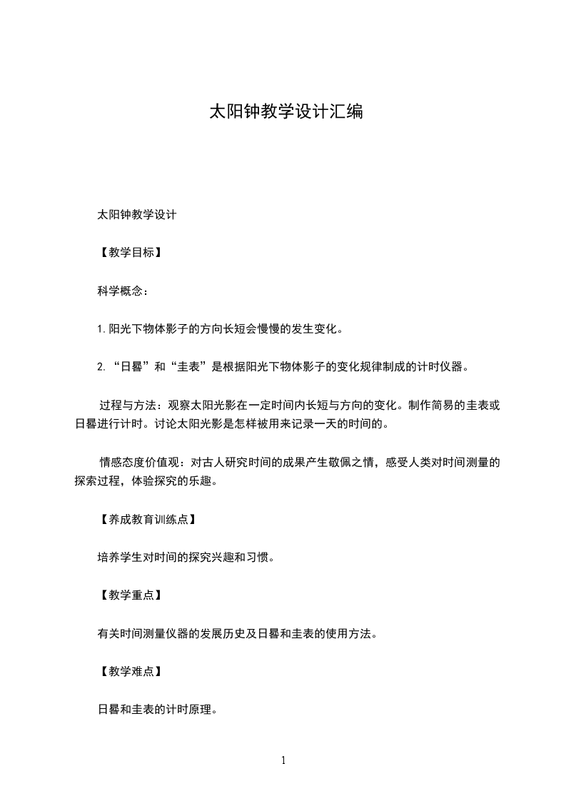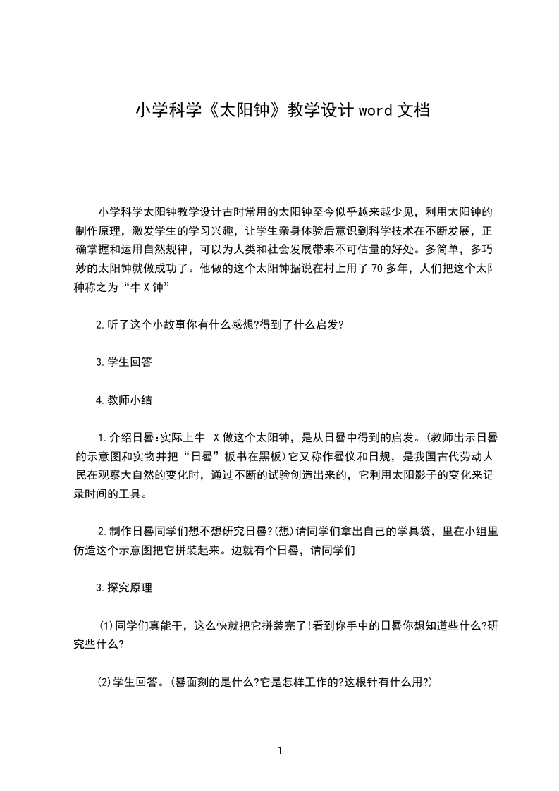 小学科学太阳钟教学设计古时常用的太阳钟至今似乎越来越少见,利用太阳钟的制作原理,激发学生的学习兴趣,让学生亲身体验后意识到科学技术在不断发展,正确掌握和运用自然规律,可以为人类和社会发展带来不可估量的好处。多简单,多巧妙的太阳钟就做成功了。他做的这个太阳钟据说在村上用了70多年,人们把这个太阳种称之为“牛X钟”