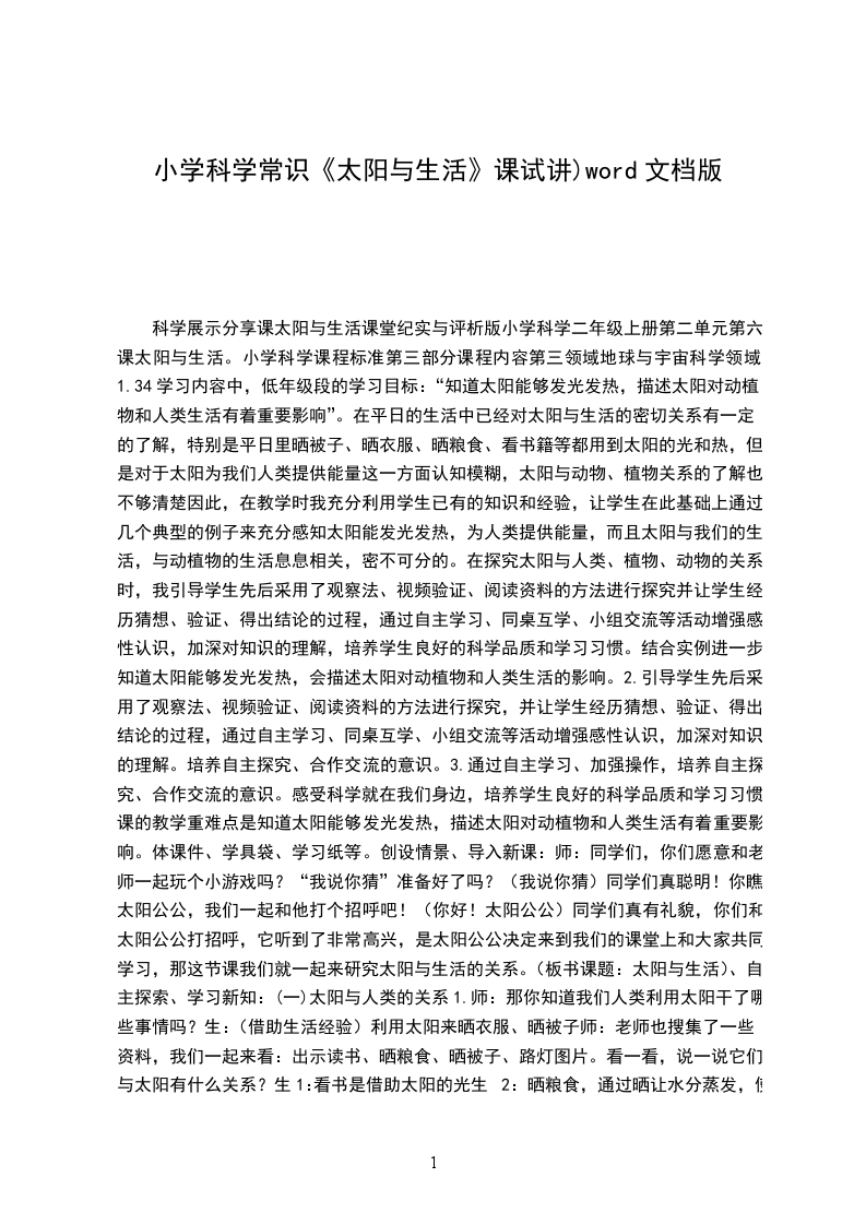 5.教师小结请同学们根据这节课学到的知识,做一个“太阳钟”或者“计时器”,下节课带到课堂上共同研究。古时常用的太阳钟至今似乎越来越少见,利用太阳钟的制作原理,激发学生的学习兴趣,让学生亲身体验后意识到科学技术在不断发展,正确掌握和运用自然规律,可以为人类和社会发展带来不可估量的好处。这节课主要是向学生介绍古代的一些计时工具,知道太阳钟的计时原理。并利用这一原理自己动手制作一计时器。课前为激励学生的学习兴趣,特质疑:在古代,还没有手表的时候,人们又是怎样判断时间的变化呢?接着通过“牛顿钟”的故事初步建立学生对太阳钟认知,学生对于他的举动自然比较感兴趣。正好切入主题,介绍太阳钟后让学生亲自动手做一做,利用电筒的光代替太阳光实践体验后,再找出工作原理,使学生认识更为深刻。在学生意犹未尽的时候介绍手掌日晷,使学生的注意力和兴趣迅速提高。学生实践验证后谈谈启发,帮助学生正确意识到掌握和运用自然规律,可以为人类和社会发展带来好处。最后出示古代一些计时器,让学生找出原理,并说说其它的计时器又是运用了什么原理计时的,帮助学生正确认识掌握大自然的规律,从中促使学生思考。同时让学生根据这节课学到的知识,做一个“太阳钟”或者“计时器”,下节课带到课堂上共同研究。帮助学生巩固知识点,并把这节课的知识加以延伸。这节课不受天气的影响下,带学生到室外体验教学效果更佳。