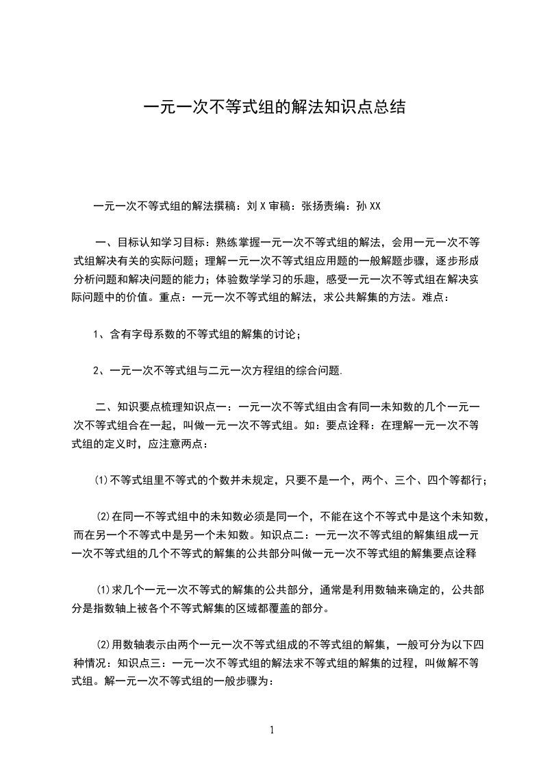 1,像这样的不等式叫一元一次不等式。