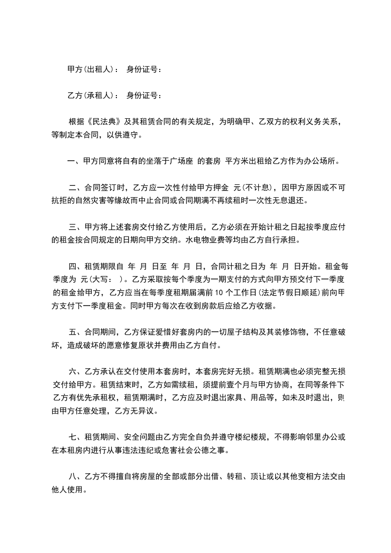 甲、乙双方经平等协商,就租赁________广场房屋事宜达成如下协议,供双方共同遵守:
