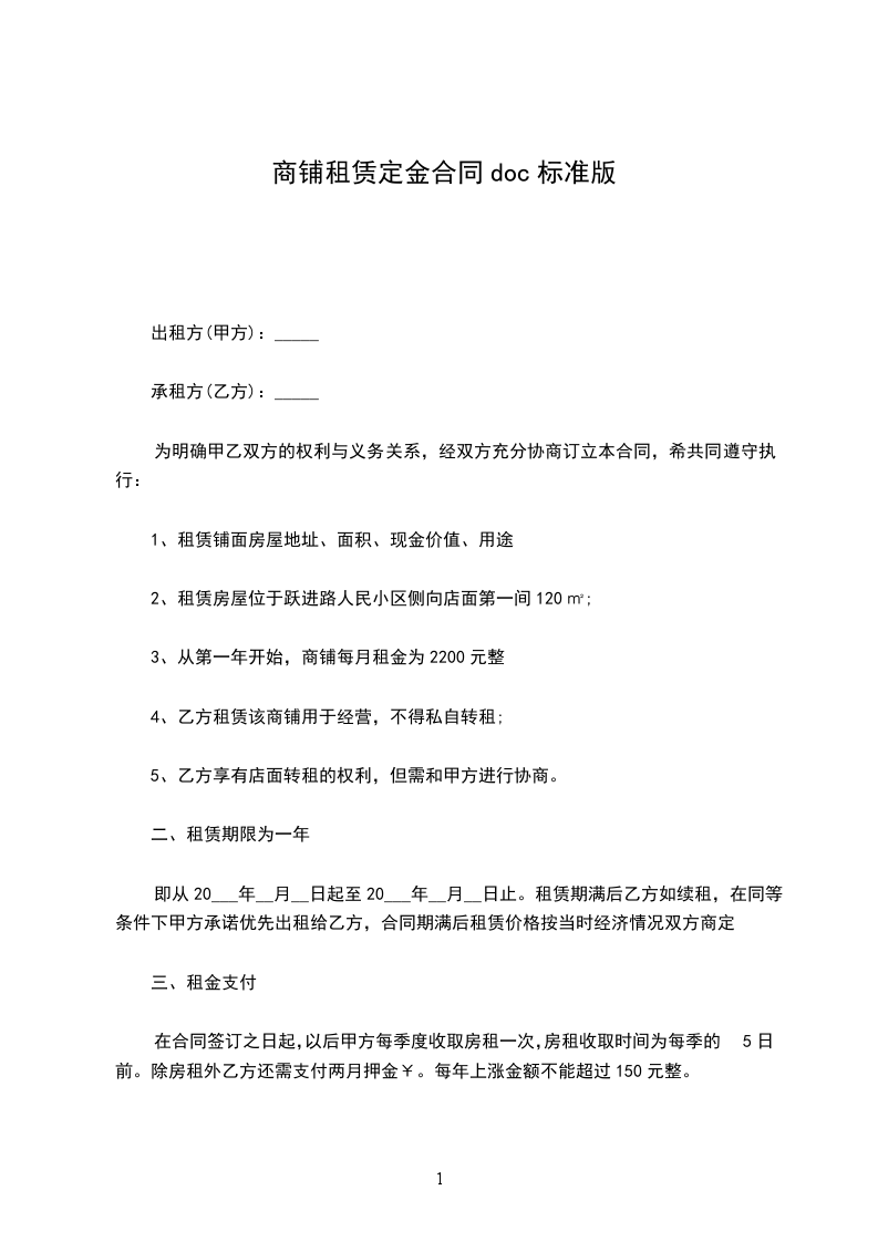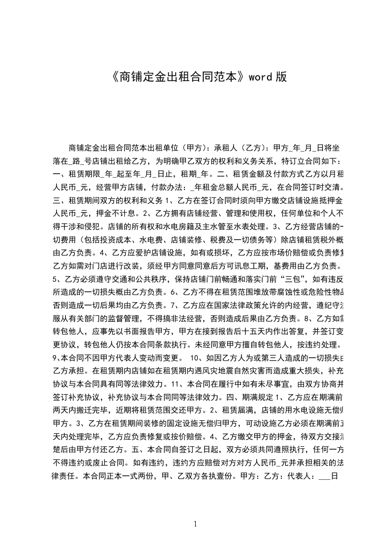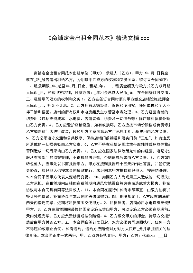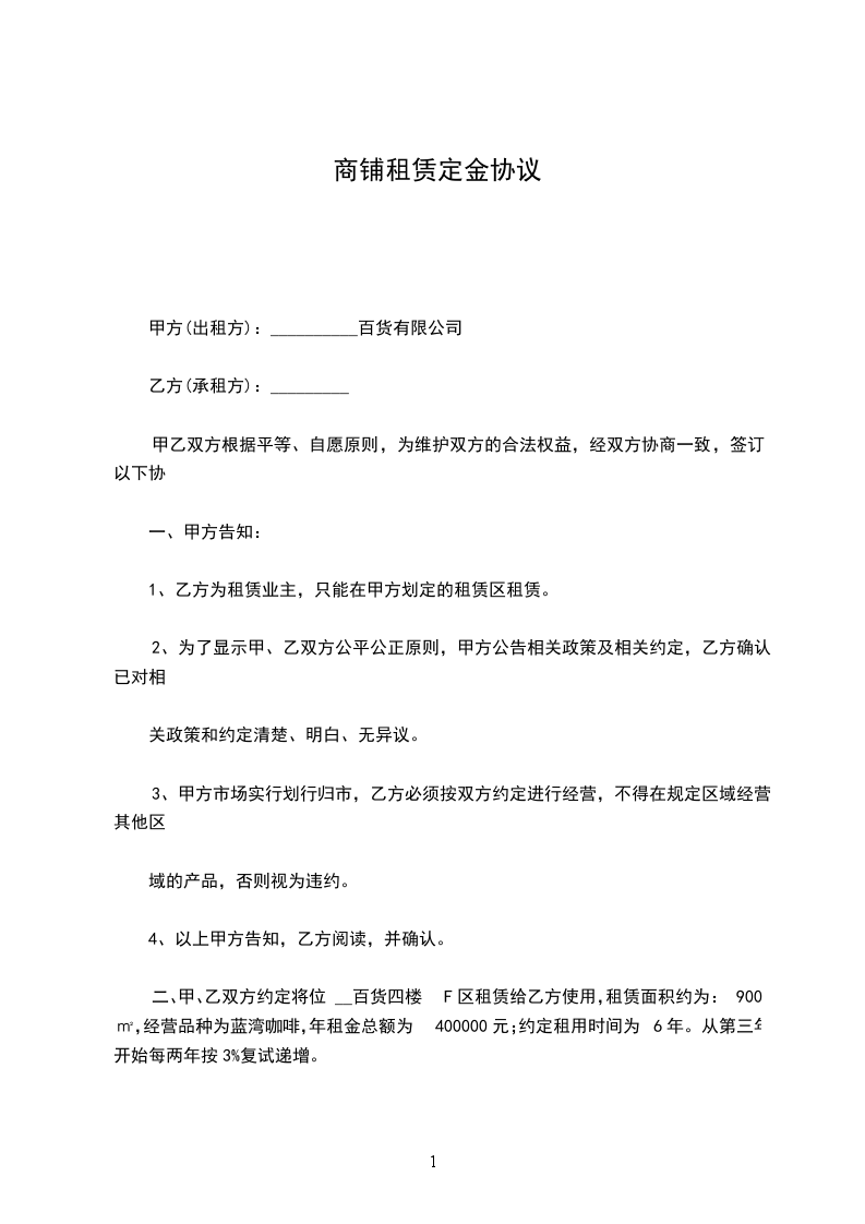 1、乙方在签订合同时须向甲方缴交店铺设施抵押金人民币_元,押金不计息。
