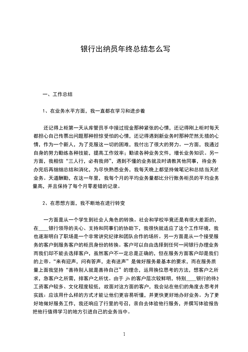 银行出纳员2024年年终总结2024年年在全行员工忙碌紧张的工作中又临近岁尾。年终是最繁忙的时候,同时也是我们心里最塌实的时候。因为回首这一年的工作,我们会计出纳部的每一名员工都有自已的收获,都没有碌碌无为、荒度时间。尽管职位分工不同,但大家都在尽最大努力为行里的发展做出贡献。时间如梭,转眼间又将跨过一个年度之坎,为了总结经验,发扬成绩,克服不足,现将今年的工作做如下简要回顾和总结:今年我在财务部从事出纳工作,主要负责现金收付,票据印章管理,开具发票和银行间的结算业务,刚刚开始工作时我简单的认为出纳工作好像很简单,不过是点点钞票,填填支票,跑跑银行等事务性工作,但是当我真正投入工作,我才知道我对出纳工作的认识和了解是错误的,出纳工作不仅责任重大,而且有不少学问和技术问题,需要理论与实践相结合才能掌握.在平时的工作中我能严格遵守财务规章制度,严格执行现金管理和结算制度,做到日清月结,定期向会计核对现金与帐目,发现现金金额不符,做到及时汇报及时处理,根据会计提供的凭证及时发放工资和其它应发放的经费,坚持财务手续,严格审核有关原始单据,不符要求的一律不付款,严格保管有关印章,空白支票,空白收据,库存现金的完整及安全,及时掌握银行存款余额,不签发空头支票和远期支票,月末关帐后盘点现金流量及银行存款明细,并认真装订当月原始凭证,每月及时传递银行原始单据和各收付单据,配合会计做好各项帐务处理及各地市资金下拨款,严格控制专款专用和银行帐户的使用.回顾一年的工作,自己感到仍有不少不足之处:1、只是满足自身任务的完成,工作开拓不够大胆等;